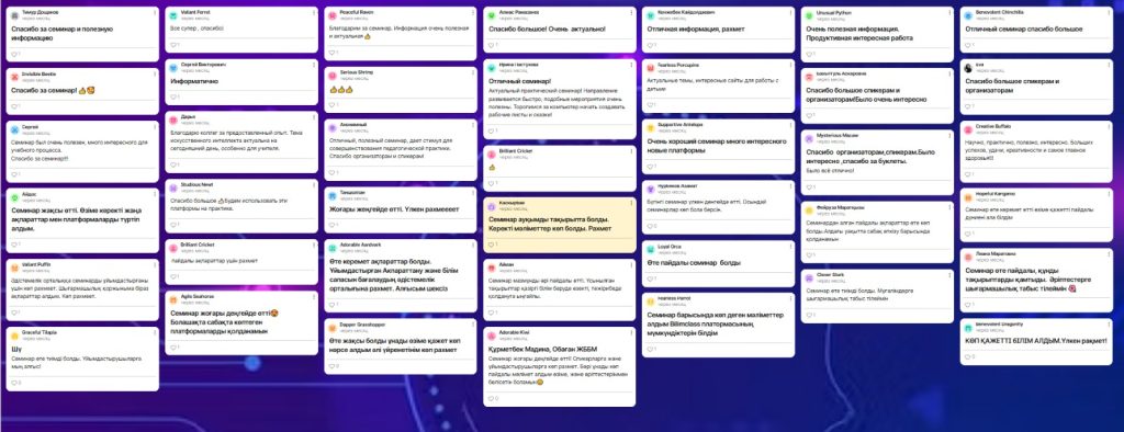 Семинарға қатысушылар педагогтердің кәсіби өсуі, олардың цифрлық құзыреттіліктерін жетілдіру және білім беру процесінің сапасын арттыру үшін осындай іс-шаралардың маңыздылығын атап өтті.