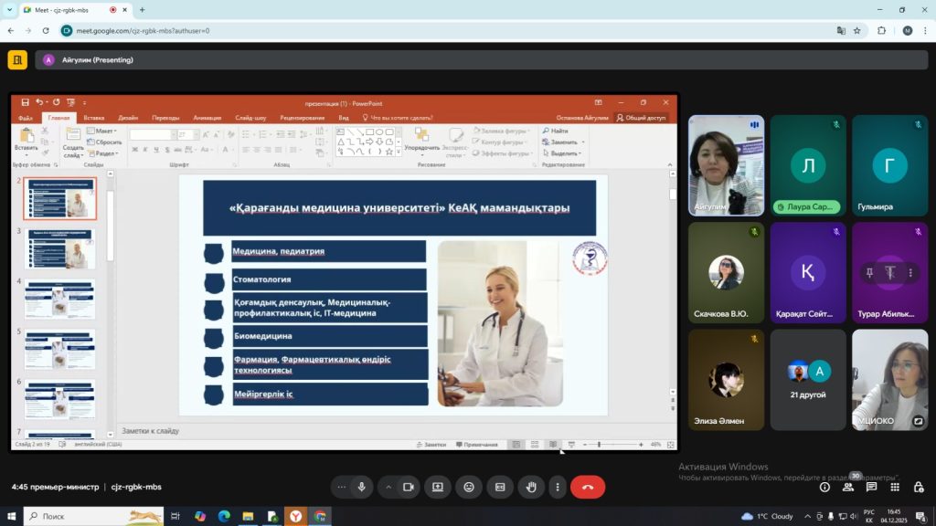 5 декабря текущего года Методическим центром информатизации и оценки качества образования была завершена серия профориентационных семинаров в онлайн формате для обучающихся 10-11 классов желающих поступить в медицинские ВУЗы. Семинары были организованы на платформе ZOOM. Семинар посетили более 1120 человек, в том числе родители обучающихся, профориентаторы школ, методисты курирующие это направление).