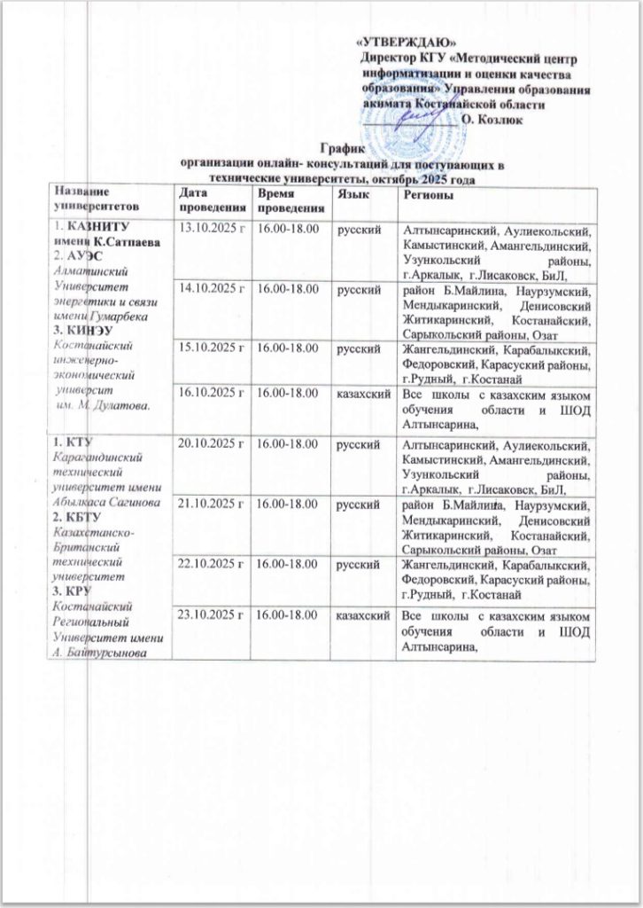 Методический центр информатизации и оценки качества образования УОАКО достиг соглашения с ведущими медицинскими, техническими ВУЗами Казахстана по проведению профориентационной работы!